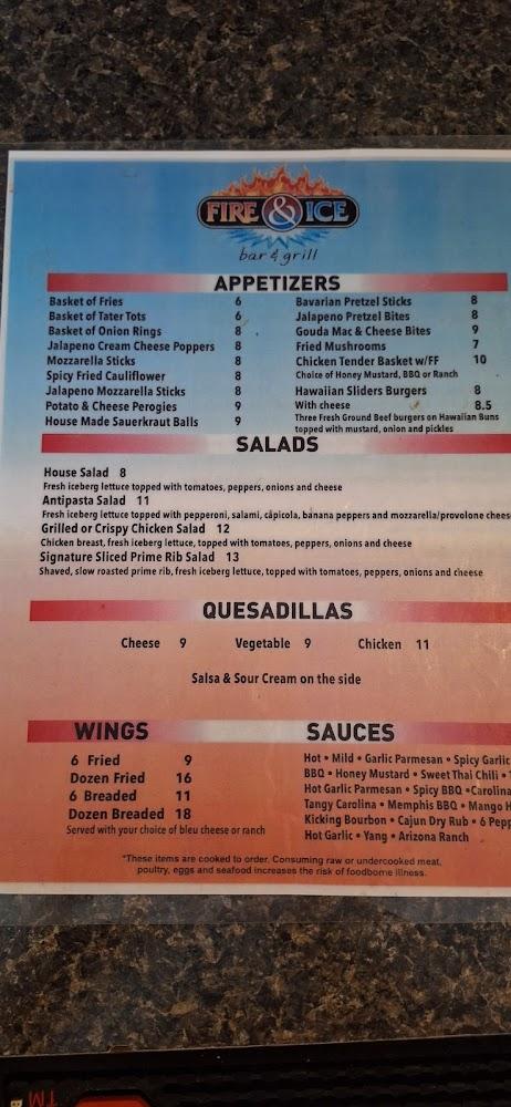 Fire & Ice offers a diverse menu that caters to all tastes. With items priced mostly between $10 and $20, diners enjoy quality at a reasonable cost. The Fire Grilled Pizza is a standout, featuring fresh ingredients and a satisfying crunch. For burger enthusiasts, the Fire and Ice Burger is always a hit, juicy and flavorful. The starters, like baskets of fries and onion rings, invite sharing. Salads round out the options, appealing to those seeking lighter fare. Thriving on simplicity, the menu showcases local flavors while providing something for everyone. Daily specials keep it exciting, inviting guests to return and explore new dishes.
